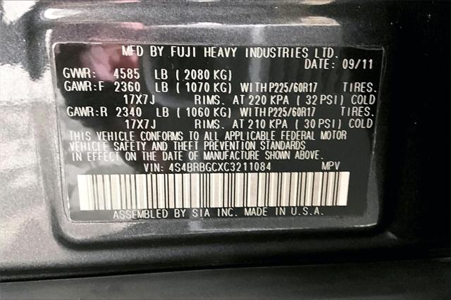 Graphite Gray Metallic 2012 Subaru Outback 2.5i Premium AWD 6-Speed Manual 2.5L 4-Cylinder SOHC 16V **LOCAL TRADE IN** Outback 2.5i Premium 2.5L 4-Cylinder SOHC 16V AWD 17"" x 7.0"" Aluminum Alloy w/Silver Finish Wheels All-Weather Package & Moonroof Package AM/FM Stereo w/Single-Disc CD Player Fully automatic headlights Power driver seat Power windows Rear Vision Camera Roof rack Security system.Were confident we have the right price for you the right quality for you the right...