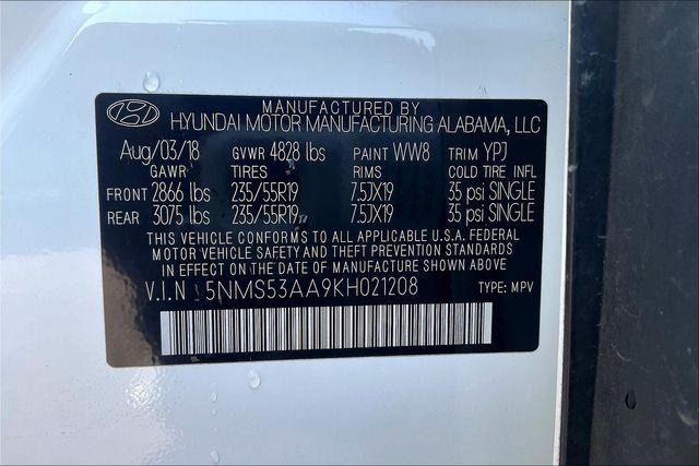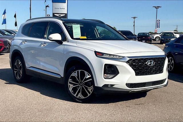 Certified. Quartz White 2019 Hyundai Santa Fe Ultimate FWD 8-Speed Automatic with SHIFTRONIC 2.5L I4 DGI Turbocharged DOHC 16V ULEV II 235hpHomer Skelton is committed to meeting your automotive needs with speed flexibility and friendly customer service. Recent Arrival! Odometer is 5039 miles below market average!Hyundai Certified Pre-Owned Details: * 173+ Point Inspection * Powertrain Limited Warranty: 120 Month/100 000 Mile (whichever comes first) from original in-service date * Vehicle History * Roadside Assistance * Includes 10-year/Unlimited mileage Roadside Assistance with Rental Car and Trip Interruption Reimbursement; Please see dealers for specific vehicle eligibility requirements. 10-Year/100 000 Mile Hybrid/EV Battery Warranty. 3 months SiriusXM trial subscription * Limited Warranty: 60 Month/60 000 Mile (whichever comes first) from original in-service date * Warranty Deductible: $50Cargo Package 12 Speakers 4-Wheel Disc Brakes ABS brakes Air Conditioning Alloy wheels AM/FM radio: SiriusXM Apple CarPlay & Android Auto Auto High-beam Headlights Auto-dimming Rear-View mirror Automatic temperature control Axle Ratio 3.320 Brake assist Bumpers: body-color Carpeted Floor Mats Compass Delay-off headlights Driver door bin Driver vanity mirror Dual front impact airbags Dual front side impact airbags Electronic Stability Control Emergency communication system: Blue Link Exterior Parking Camera Rear Four wheel independent suspension Front anti-roll bar Front Bucket Seats Front Center Armrest Front dual zone A/C Front fog lights Front reading lights Fully automatic headlights Garage door transmitter: HomeLink Heads-Up Display Heated & Ventilated Front Bucket Seats Heated door mirrors Heated front seats Heated rear seats Heated steering wheel Illuminated entry Leather Seating Surface Leather Shift Knob Leather steering wheel Low tire pressure warning Memory seat Navigation System Occupant sensing airbag Outside temperature display Overhead airbag Overhead console Panic alarm Passenger door bin Passenger vanity mirror Power door mirrors Power driver seat Power Liftgate Power moonroof Power passenger seat Power steering Power windows Radio: Infinity Premium AM/FM/MP3 Display Audio Rain sensing wipers Rear anti-roll bar Rear Parking Sensors Rear seat center armrest Rear window defroster Rear window wiper Remote keyless entry Roof rack: rails only Security system Speed control Speed-sensing steering Split folding rear seat Spoiler Steering wheel mounted audio controls Tachometer Telescoping steering wheel Tilt steering wheel Traction control Trip computer Turn signal indicator mirrors Variably intermittent wipers Ventilated front seats and Wheels: 19"" x 7.5J Alloy.
