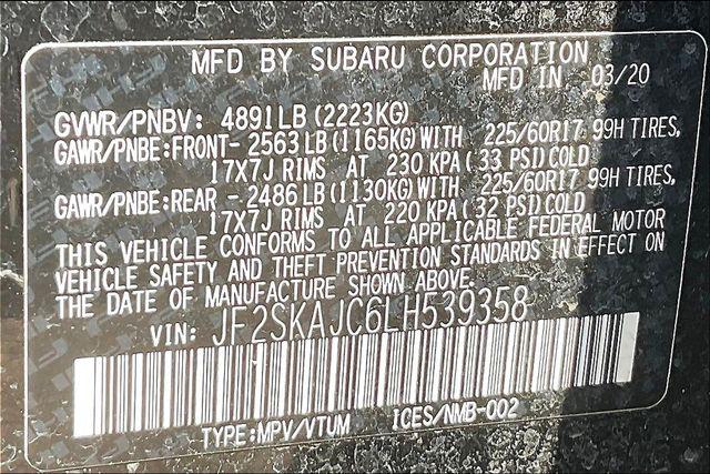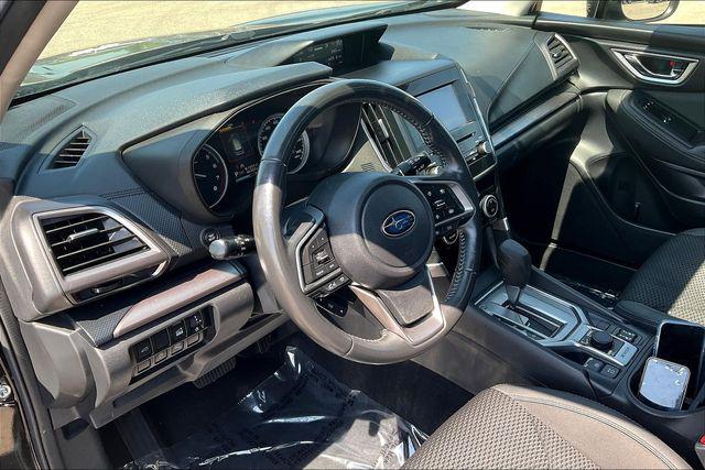 CARFAX One-Owner. Certified. Crystal Black Silica 2020 Subaru Forester Premium AWD Lineartronic CVT 2.5L 4-Cylinder DOHC 16V VVTHomer Skelton is committed to meeting your automotive needs with speed flexibility and friendly customer service. 26/33 City/Highway MPGCertification Program Details: COVERS ALL OF THESE SYSTEMS AND COMPONENTS: Engine | Transmission | Front-wheel drive assembly Rear-wheel drive assembly Cooling system Fuel system | Front-wheel steering assembly Air-conditioning & heating system Brake system Audio entertainment system | Suspension assembly Electronic instruments Chassis hardware Electrical system PLUS...24-HOUR EMERGENCY ROADSIDE SERVICE Provides towing assistance; dead battery service; flat tire assistance; fuel oil and water delivery service; and lockout service expenses up to $50 per occurrence for 12 months from the vehicle sale date.Driver Assist Tech Pkg & Keyless Acc & Pwr Rr Gate (Blind Spot Detection w/Rear Cross Traffic Alert Driver's Seatback Pocket Gloss Black HVAC Control Panel Bezel Keyless Access w/Push-Button Start Power Rear Gate and Rear Dual USB Charge Ports) 3.70 Axle Ratio 4-Wheel Disc Brakes 6 Speakers ABS brakes Air Conditioning Alloy wheels AM/FM radio: SiriusXM Auto-Dimming Mirror w/Compass & HomeLink Automatic temperature control Brake assist Bumpers: body-color Cargo Net CD player Cloth Upholstery Dome Light LED Upgrade Driver door bin Driver vanity mirror Dual front impact airbags Dual front side impact airbags Electronic Stability Control Emergency communication system: STARLINK Safety and Security (Subscription Required) Exterior Parking Camera Rear Four wheel independent suspension Front anti-roll bar Front Bucket Seats Front Center Armrest Front reading lights Fully automatic headlights Heated door mirrors Heated Front Bucket Seats Heated front seats Illuminated entry Knee airbag Low tire pressure warning Occupant sensing airbag Outside temperature display Overhead airbag Overhead console Panic alarm Passenger door bin Passenger vanity mirror Power door mirrors Power driver seat Power moonroof: Panoramic Power steering Power windows Radio data system Radio: Subaru Starlink 6.5"" Multimedia Plus System Rear anti-roll bar Rear seat center armrest Rear window defroster Rear window wiper Remote keyless entry Roof rack: rails only Security system Speed control Speed-sensing steering Split folding rear seat Spoiler STARLINK/Apple CarPlay/Android Auto Steering wheel mounted audio controls Tachometer Telescoping steering wheel Tilt steering wheel Traction control Trip computer Variably intermittent wipers and Wheels: 17"" x 7.0J Black Machine Finish Alloy.